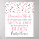 Decorar um poster de sinal de jogo de bloco para chá de fraldas em padrões de confete cor-de-rosa e prata. Observe que o efeito de brilho é apenas efeito fotográfico.