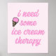 NewParkLane - poster divertida, com citação: 'Preciso de uma terapia de sorvete' em uma divertida tição tipografia rosa-quente, com um cone de sorvete pequeno. Verifique se há itens correspondentes nesta coleção.