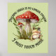 Ilustração em aquarela de um sapo e cogumelos com o texto "Tocar capim não é mais suficiente. Preciso tocar musgo."