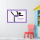 Presentes de ginástica, artista de ginástica poster personalizado exibindo um ícone preto minimalista de uma ginasta vestindo um leotard roxo com uma borda roxa ao redor. Personalize-o e altere o texto com monograma, nome ou mensagem.