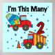 Veículos de construção coloridos, incluindo escavador, carregador frontal e misturadores de cimento em Veículos de Construção segundo aniversário T-shirts, cartões, autocolantes, sacos de tote, ímãs, pegadas e muito mais.