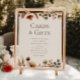 Um cartaz de casamento atencioso e alegre para cartas e presentes com tipografia retrô ousada em branco sobre um fundo amarelo brilhante com um pequeno poema que diz "Obrigado pelos presentes, tão gentis e verdadeiros Eles nos ajudarão a construir, uma vida nova Somos gratos pelo seu pensamento e cuidado E pelo amor que você compartilha, além de comparar".