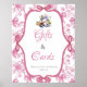 Adicione um toque encantador à sua festa de chá com este Sinal de presentes e cartas de festas de flor selvagem rosa! Apresentando delicadas flores silvestres de aquarela em matizes cor-de-rosa macio, este símbolo elegante é perfeito para guiar os hóspedes a deixar os seus presentes pensados e cartões de felicidade. Quer você esteja hospedando um chá de panela, chá de fraldas, festa de aniversário ou evento temático de jardim, esta placa adiciona um toque caprichoso e sofisticado à sua decoração.