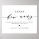 Adivinha quantos doces estão no vidro! Adicione uma atividade divertida ao seu evento com este sinal de chá de fraldas. Ele apresenta uma escrita simples e preta e uma tipografia clássica. Personalize adicionando seu nome e evento. Este painel partidário é perfeito para chás de fraldas neutros de gênero e qualquer tema de chá de fraldas.