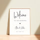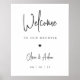 Um simples e moderno sinal de boas-vindas para ser exibido na entrada da sua cerimônia ou recepção de casamento, esta design baseada em tipografia gráfica apresenta "bem-vindos ao nosso casamento", seus nomes, e sua data de casamento, em uma mistura de roteiro escrito à mão e letras clássicas de serifa. Via oral: Ash: um preto macio.