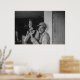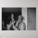 Esta adorável poster apresenta um casal feliz rindo e inclinando-se contra uma parede de celeiro. Um presente perfeito para o amante da fotografia de vintage em sua vida.