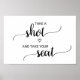 Este simples negro tira uma foto e toma seu assento é perfeito para um casamento temático rústico ou moderno. A design minimalista apresenta uma elegante letra de escrita de pincel e um adorável coração feminino. A linha de texto na parte inferior da placa pode ser personalizada com a data, os nomes da noiva e do noivo, ou uma mensagem curta como "Obrigado".