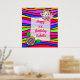 Personalize this poster by adding the birthday girl's name to it in the customize area. Cute blonde haired Fairy Girl Happy Birthday with bright pink, lime green, yellow. Folk Art style poster.