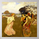 Primavera Dança de Arthur F. Mathews (americano, 1860-1945) Meninas sorridentes com braços levantados dançando no campo com árvores floridas.