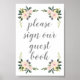 Assinem o nosso livro de convidados com florais cor-de-água cor-de-rosa pincelada com um roteiro de caligrafia moderno.