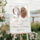 Sinal de Boas-vindas de Aniversário do Elegante 90 com Foto | Acentos Florais e Dourados... Bem-vindos a seus convidados... para a celebração do seu marco... com este estonteante sinal de boas-vindas de 90, com delicados florais de aquarela e sotaques de ouro elegantes. Projetado para destacar sua foto personalizada, este sinal adiciona um toque quente e pessoal à entrada do evento. Quer você esteja hospedando uma festa de jardim, um brunch, ou uma reunião de noite em chic, este signo personalizável define o tom perfeito. Edite o texto para incluir seu nome e data da festa — na moda sem esforço e exclusivamente seu.