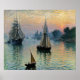"Primeira Expedição de Luz" retrata uma cena matinal serena sobre a água, capturando o cavalheirismo gentil de veleiros se preparando para partir em uma expedição sob a matiz da madrugada. O artista emprega seu estilo impressionista de assinatura, usando pinceladas delicadas e uma paleta de tons silenciados para evocar a atmosfera tranquila da manhã cedo na água. A brincadeira de luz e sombra cria um sentido de movimento e profundidade, convidando os espectadores a mergulharem na beleza pacífica do momento.