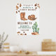 Encoste-se! Este design de aquarela. Este design apresenta cores neutras modernas em uma aplicação de aquarela. Design em impressão de vaca, chapéu de cowboy, cacto do deserto, botas de cowboy.