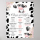 Boho Floral primeiro aniversario Milestone Poster da moça poster de primeiro aniversario mestiço do boho para sua garotinha com duas vacas brancas e pretas bonitinhas, dois balões e dois arranjos florais com grama pampas. Esta poster de marco de vaca também apresenta um padrão de impressão de vaca e é uma adorável decoração para a primeira festa de aniversário de menina.