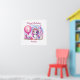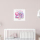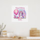 Um unicórnio bonito está celebrando seu primeiro aniversário com presentes, um balão rosa e um castelo rosa. Perfeito para a primeira festa de aniversário de uma menina. Adicione seu próprio texto personalizado.