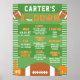 Este poster de 1º aniversário se coordena perfeitamente com os nossos convites e papéis de carta temáticos de futebol do "Primeiro Ano em Baixo". Apresenta um fundo verde de campo de futebol listrado com futebol, capacete e sotaque número 1 em laranja brilhante. Personalize com todos os seus pequenos marcos e estatísticas.