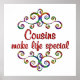 Uma maneira bonito de deixar aquele primo amado saber como se sente. Aproveite esta design colorida com florescimento e as palavras - primos tornam a vida especial.