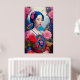 Uma imagem de uma princesa asiática com cabelo azul. Este é um trabalho de arte gerado por IA com um tema floral.