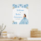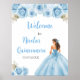 Esta placa de boas-vindas Quinceanera apresenta uma bela princesa num vestido de bola azul com arranjos florais. Isto é perfeito para uma festa de aniversário de Quinceanera.