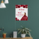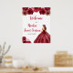 Este doce sinal de boas-vindas apresenta uma bela princesa em um vestido vermelho burgundy com arranjos florais. Isto é perfeito para uma doce festa de aniversário de dezesseis.