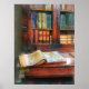 Design de Susan Savad - Design de credenciação em cheio de estudo de uma professora de livros escolares como dicionários, livros de história e livros de literatura com livro de geografia aberto sobre a mesa