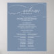 Um poster de programa de cerimônia de casamento rústico e elegante com letra Poeira Azul. Adicione sua própria cor de fundo.
