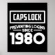 Este engraçado design de software de computação e desenvolvedor de web diz "bonés travam impedindo logins desde 1980".