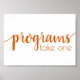 Placa de sinalização moderna horizontal "Programas: Por favor, pegue um" para chuveiro, festa ou recepção com uma fonte divertida e casual, feita à mão. O design clássico inclui uma sobreposição de tipografia de citação feita à mão. A linda fonte com uma cor de fundo personalizável torna fácil se adequar a qualquer tema. Para outras cores ou produtos correspondentes, visite a loja JustFharryn Zazzle. Todos os direitos reservados. #zazzlemade