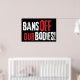 Mostre seu apoio ao direito das mulheres à autonomia corporal com este poster pró-escolha "Banir nossos corpos", com estilo verde, branco e vermelho, sobre fundo preto.