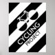 Design gráfico moderno, preto e branco, com tema de bicicleta. Listras diagonais e uma bicicleta. Uma criação original e exclusiva da MixedWorld