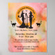 Crie seu poster de promocional para o evento de caminhada das bruxas de sua cidade. Impresso com silhuetas de bruxas modernas e elegantes contra um logotipo laranja e fundo do estilo aquarela. Destacado com dois gatos pretos. Todo o texto é editável para os detalhes do evento. Outras opções de tamanho.