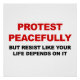 Protesto pacificamente, mas resista como se sua vida dependesse disso! Sinal de protesto ou poster.
