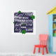 Proverbe : "Um bom amigo é como um duro de trevo de quatro folhas para encontrar e ter sorte" Texte blanc sur fond bleu style tableau d’école, entouré de trèfles à quatre feuilles verts.