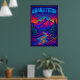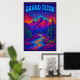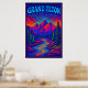 A representation of the Grand Tetons in a blacklight reactive 1960s style.