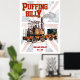 Grunge design of the Puffing Billy vintage steam train with UK Union Jack flag in background. Historic 19th century British Locomotive by William Hedley.