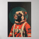 Poster Pug Astronaut Poster, Pug Retro Print, Pug