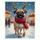 A festive painting of a Pug enjoying a snowy winter fairground filled with lights and laughter. This joyful scene captures the wonder of Christmas celebrations for dog lovers everywhere.