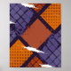 Esse abstrato geométrico design apresenta um arranjo estruturado de interseção de formas formando uma grade rítmica. Dominada por tons vibrantes de laranja, roxo e marrom, a composição se concentra em torno de uma forma laranja ousada, cercada por elementos alternados preenchidos com padrões de grade e pontos. Listras brancas diagonais varrem a superfície como pincéis expressivos, adicionando textura dinâmica e movimento. O contraste entre tons quentes e legal, combinado com simetria geométrica e detalhamento em camadas, resulta em uma peça visualmente atraente, adequada para arte moderna, marca digital ou design têxtil.