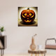 Abóbora esculpida brilhante com uma expressão assustadora, perfeita para temas, decorações e festas do Dia das Bruxas.