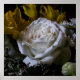 Closeup photo of a white rose in bloom