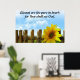 Um girassol solitário é contra uma cerca postada com o sol brilhando num dia bonito. O verso Matthew 5:8 Abençoado é o puro de coração: porque eles devem ver Deus impresso a preto. O girassol significa pensamentos puros.