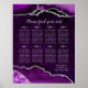 Poster Purple and Silver Agate Wedding Seating Chart