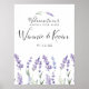 Floral roxo, sinal de casamento Lavanda. Projetado com flores de lavanda pintadas à mão púrpura com estilização do tipo aquarela. Personalize este design com o seu nome e informações de casamento personalizadas. A cor de fundo está definida como branca, mas você pode escolher uma cor de preenchimento de sua escolha.