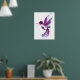trabalho de arte de aquarela tradicional de um beija-flor roxo colorido espalhando suas asas e levitando como um impressão de poster decorativo.