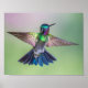 Impressão com um beija-flor-gema de montanha roxo em voo na Costa Rica, com suas impressionantes penas roxas, verdes e azuis em exposição — uma decoração única e bela para beija-flor e amantes da natureza. Foto tirada em Bosque de Paz Reserva Biologica, Valle del Rio Toro, Alajuela, Costa Rica.