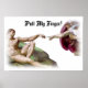 Uma versão ligeiramente distorcida da “Criação do Homem” de Michelangelo, mostrando Deus oferecendo a Adão seu dedo com a promessa de uma recompensa divina. Dá um novo significado à Teoria do Big Bang.