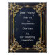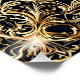Um quadro decorativo de ouro luxuoso em estilo barroco enfeitando um fundo vazio escuro.