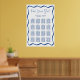 Ajude os hóspedes a encontrar suas mesas com esta Poster de Gráfico de Casamento de Moldura Azul Moderno. Um fundo branco com quadros de borda ondulada azuis e negrito até 16 mesas, com nomes de convidados dispostos abaixo de cada cabeçalho. No topo, "Find Your Seat" (Encontre seu assento) é mostrado em um roteiro azul manuscrito, enquanto seus nomes e a data do casamento aparecem abaixo. Disponível como impressão profissional ou download instantâneo para impressão em casa.