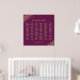 Este lindo quadro de assentos de casamento apresenta texto dourado em um fundo roxo, magenta ou amarelo com atribuições de assentos para até 250 convidados. Ele apresenta um simples na moda e elegante design com filigre de ouro de folha decorativa de ornamentado nos cantos. O título está escrito em caligrafia de script de rico e diz: Por favor, encontre sua mesa.