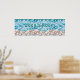 Pôster personalizado de conchas e ondas do mar para o quarto de uma criança. Personalize esta arte de parede de 36 x 12 polegadas com o nome de uma criança ou nome com "quarto". O texto verde-mar é impresso sobre ondas azuis e conchas interessantes alinham-se à costa. Você pode alterar o tamanho, mas certifique-se de que todo o texto permaneça longe das bordas. O design unissex é perfeito para meninos ou meninas. Faz um presente único e especial para um novo bebê também!